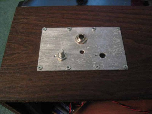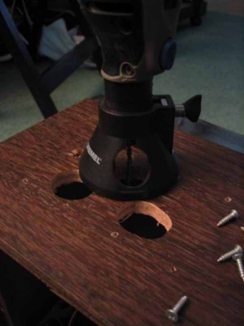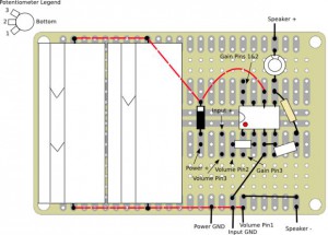 Odstráňte zo zadnej strany kryt reproduktora.Skrate kabel aby ste urobili priestor na zosilovač.Do boku reproduktora vyvŕtajte dieru na potenciometer a jack 3,5mm.